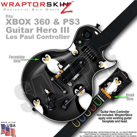 Penguins on Black WraptorSkinz Skin fits XBOX 360 & PS3 Guitar Hero III Les Paul Controller (GUITAR NOT INCLUDED) Overview