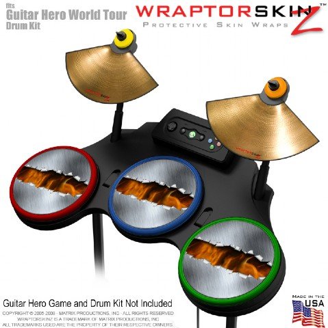 Ripped Metal Fire Skin by WraptorSkinz fits Guitar Hero 4 World Tour Drum Set for Nintendo Wii, XBOX 360, PS2 & PS3 (DRUMS NOT INCLUDED) Overview