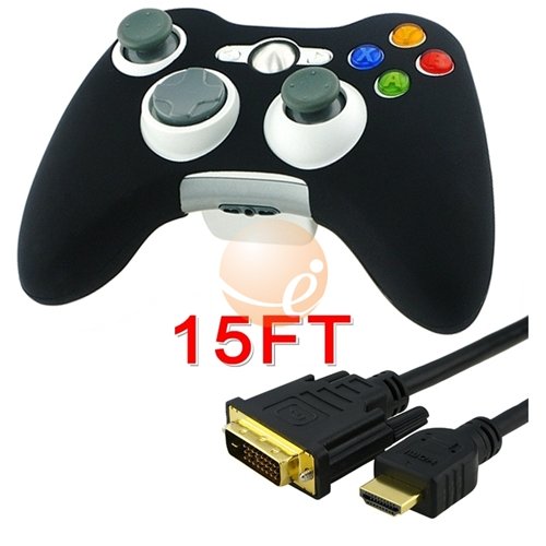 - Included 1x Black Silicone Skin Case for Microsoft xBox 360 Controller + 1x BLACK HDMI to DVI Cable 5Gbps M/M, 15 FT / 4.5 M