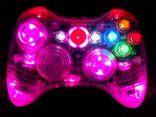 This controller features a unique clear shell and 5 mode rapid fire. The controller is filled with BRIGHT PINK LED lights! Even the thumbsticks have LED lights in them! Just check out the pictures to see how truly amazing this controller looks. The rapid fire works for ALL Call of Duty games (including Black Ops), Halo, and Gears of War. The controller has the fastest possible speed settings for those games. It also features a user programmable mode, so it will work for future games, and those not listed as well. Comes with a one year warranty.Also features LEDs in the following buttons:ABXY, Start/Back, Guide, RB, LB, thumbsticks