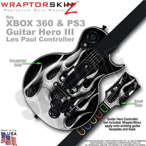 Metal Flames Chrome WraptorSkinz Skin fits XBOX 360 & PS3 Guitar Hero III Les Paul Controller (GUITAR NOT INCLUDED) Feature